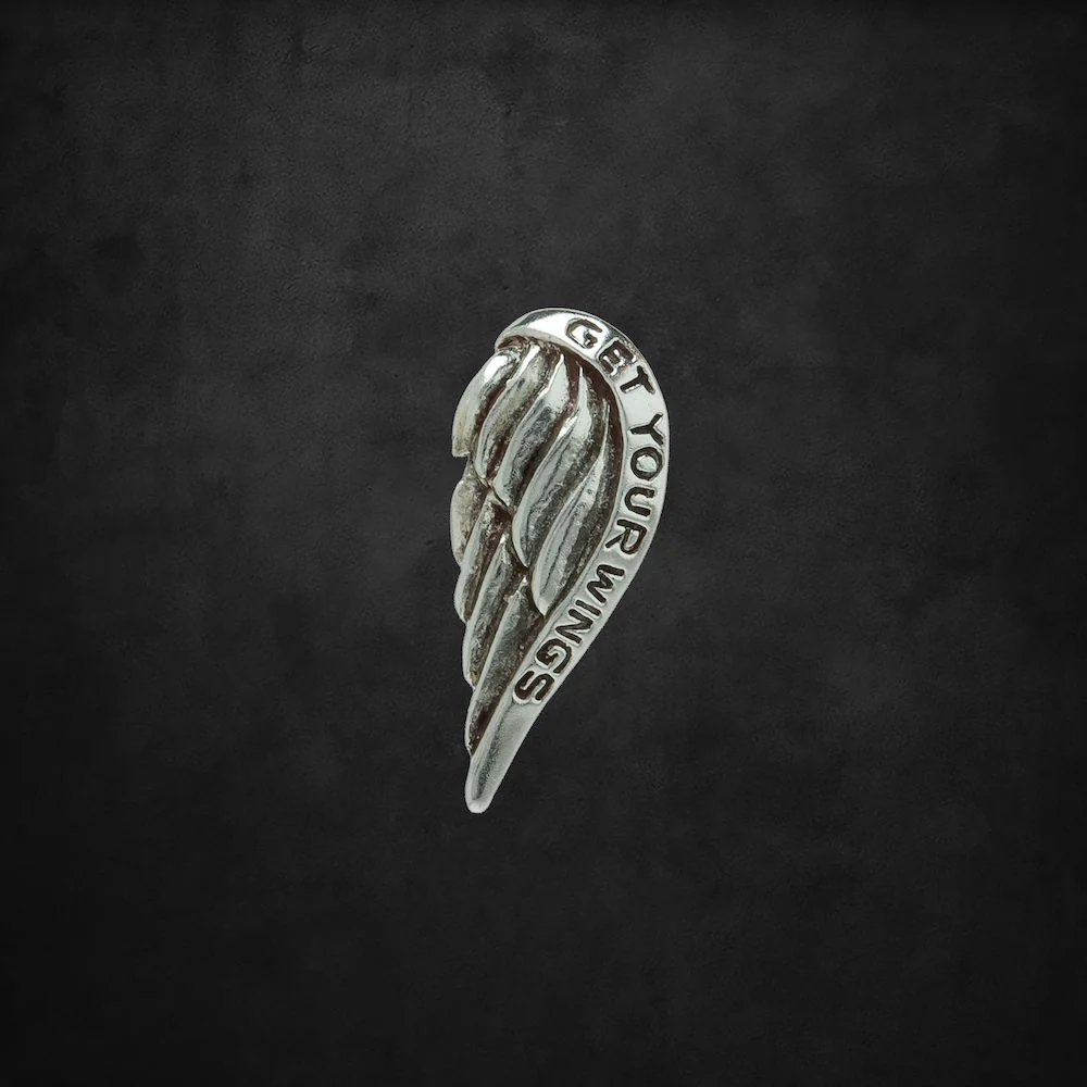 Materials: Sterling silver. Front inscribed Get Your Wings. The side is inscribed with 2020 and a special maker's mark.